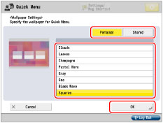 Select the button to set the wallpaper for → select the wallpaper settings → press [OK].