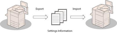 If you perform the Import All function in the following cases, setting values may not be imported or may be changed into similar values. The required optional equipment is not attached or function related to the setting information is unavailable. The importing setting value is not valid in the destination machine for importing. |