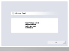 | As [OK] is not displayed, only an administrator can close this message board. When this message board is displayed, you cannot operate the machine. This message board is best suited when you want to stop the operations of the machine temporarily. |