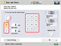 You can manually specify a scan size when scanning originals that cannot be detected using [Auto]. You can also register the specified scan size.