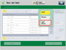 [Change Addr. Book] appears only if you register both the Remote Address Book and LDAP server. If only the LDAP server is registered on the machine, [To LDAP Server] is displayed. |