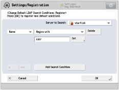 You can only use organization/organization unit as search categories if the information has been registered on the LDAP Server. You may be unable to search using organization/organization unit, depending on the type of server application. You can also add additional user-defined search attributes. (See "Registering/Editing LDAP Search Attributes.") |