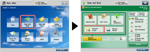 → [Scan and Send] → [Personal Folder].