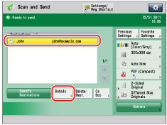 The procedure to change the information is the same as when creating a new destination. (See "Specifying a Destination by Entering an E-mail Address,""Specifying Destinations by Entering an I-Fax Address," and "Specifying a Destination by Entering a File Server.")