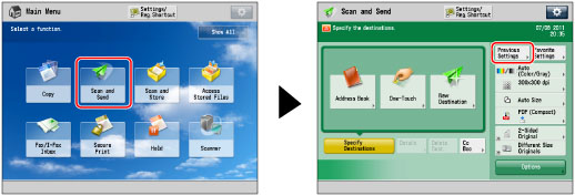 Press → [Scan and Send] → [Previous Settings].