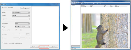 Scanned files are stored in [Scanned Documents] folder in [Documents]. If you click [Preview], the scanned file is displayed, but it is not stored in a computer. |
