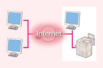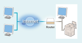 If a global IP address is assigned to a printer/multifunction machine, you can create a network environment to reduce the risk of unauthorized access by installing security software, such as a firewall that prevents access from the external networks. If you want to assign a global IP address to and use a printer/multifunction machine, contact your network administrator. |