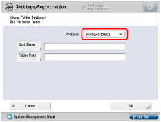 Enter the host name for the folder you want to set as the home folder → press [OK].