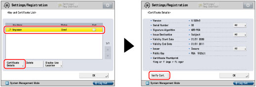 Press [Management Settings] → [Device Management] → [Certificate Settings].