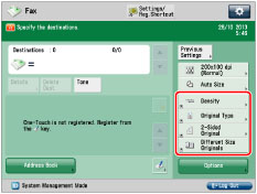 You can register settings in the shortcut keys displayed on the Fax screen. You can register up to four desired buttons from [Options].