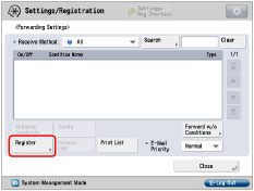 The forwarding settings are stored in memory if you press [OK] on the Register screen or the Edit screen. Identical forwarding settings are stored only once in memory. |