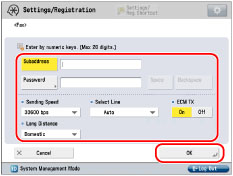 If you want to attach a subaddress to your send job, make sure that the recipient's fax machine supports ITU-T standard subaddresses. (See "Sending with a Subaddress.") |