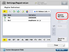 If you perform a new destination search when a search result is already displayed on the destination list screen, the displayed search result is cleared. If the search result for specified criteria is displayed, the search result is cleared and search for all criteria is processed when you press [All]. If you set [Auto Search When Using LDAP Server] to 'Off', nothing appears on the destination list screen until you perform a search. If the search result from [Search by Conditions] is displayed on the search list screen, you cannot additionally press [Search by Name] to narrow the search by name. If a destination is registered with an e-mail address and a fax number, you can search for the e-mail address by entering the fax number as the search criterion, and vice versa. |
