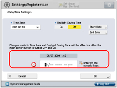 The time at the Greenwich Observatory in England is called GMT (Greenwich Mean Time). If you set Daylight Saving Time, the machine automatically sets the standard time of the machine one hour forward at the specified date and time. |