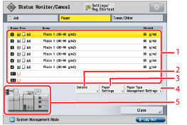 2 | Details Press to check the detailed information of paper loaded in the selected paper source. |