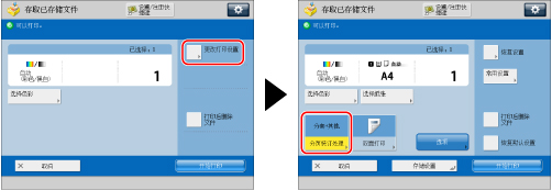 有关可选产品的信息,请参阅以下内容: 如果未设置[分页装订处理],则与设置了[分组(相同页)]时的情形相同。 通过按[详细说明]可以显示选定纸张的详细信息。 |