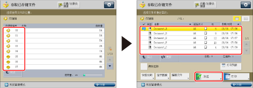 最多可以同时选择和发送存入同一存储箱的32个文件。 最多可以同时发送999页。 |