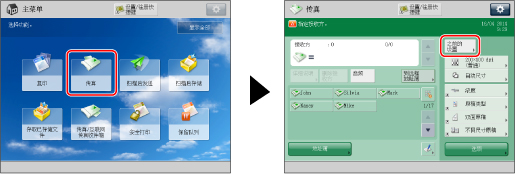 (主菜单)→[传真]→[之前的设置]。