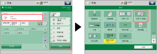 [不同宽度]: | 如果放置不同宽度的原稿,请按此键。 |