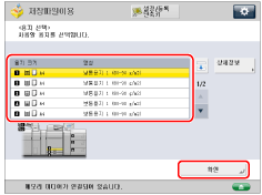 용지 종류에 대한 자세한 내용은 "사용할 수 있는 용지"를 참고하십시오. [상세정보]를 누른 경우, 선택된 용지에 대한 자세한 정보가 표시됩니다. 를 누르면 기기 그림의 표시 여부를 변경할 수 있습니다. 자세한 사항은 "용지 목록 선택 화면의 기본 표시 변경 "을 참고하십시오. |