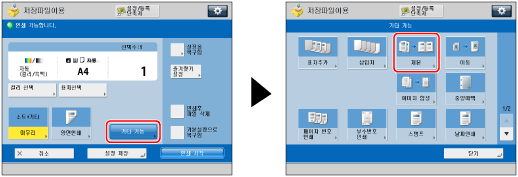 [표지추가]는 박스에 저장된 파일을 인쇄할 때만 사용할 수 있습니다. 표지를 추가하는 경우 소책자 피니셔-T1의 제본 트레이에 적재할 수 있는 최대 세트 수는 10세트 입니다. |