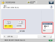 표지에 사용할 용지를 선택하려면 <용지 선택>에 대해 [변경]을 누르고 → 용지 공급원을 선택한 후 → [확인]을 누릅니다.