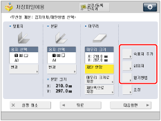 마무리 크기별로 지정 | 세로 재단 | 138.0 mm ~ 216.0 mm | 257.0 mm ~ 297.0 mm |