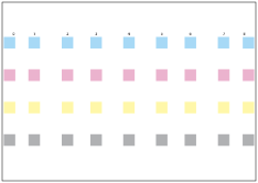 이 모드에서는 테스트 페이지의 출력 결과를 검토하고 농도를 수동으로 보정하여 불균일한 농도를 보정할 수 있습니다. 농도계를 사용할 수 없거나 농도계에 의한 보정이 만족스럽지 않은 경우 이 모드를 선택하세요. 참고로 농도를 수동으로 조정하려면 다소 불균일한 농도를 찾아내는 데 충분한 경험이 필요합니다.