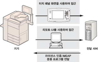 기기에서 전달 서버 접속 및 시스템 옵션/MEAP 응용 프로그램 설치