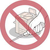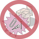 기기에 액체를 흘리거나 종이 클립이나 스테이플 같은 이물질을 기기 내에 떨어뜨리지 않도록 주의하십시오. 이물질이 기기 내의 전기 부품과 접촉하면 합선을 일으켜 화재나 감전의 원인이 될 수 있습니다.