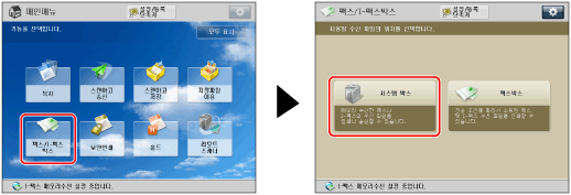 → [팩스/I-팩스 박스] → [시스템 박스]를 누릅니다.