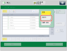 리모트 주소록 및 LDAP 서버를 둘 다 등록할 경우에만 [주소록 변경]이 나타납니다. 기기에 리모트 주소록만 등록된 경우에는 [리모트 주소록]이 표시됩니다. |