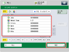 (숫자 키)를 사용하여 액세스 번호를 입력합니다. [액세스 번호 없음]을 누르면 액세스 번호로 관리되지 않는 수신인이 나타납니다.참고 |