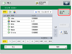 선택한 수신인을 취소하려면 해당 수신인을 다시 선택하십시오. 수신인을 하나만 선택한 경우 를 눌러 주소록 화면에서 송신하십시오. |