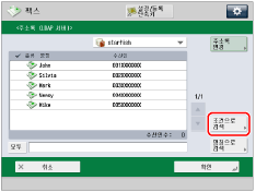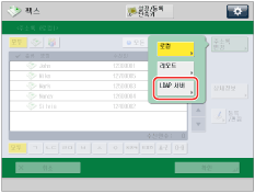 [주소록 변경]은 리모트 주소록 및 LDAP 서버를 둘 다 등록할 경우에만 나타납니다. LDAP 서버만 기기에 등록한 경우 [LDAP 서버에]가 표시됩니다. |