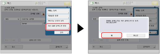 → [LDAP 검색조건의 기본설정 변경] → [예]를 누르세요.