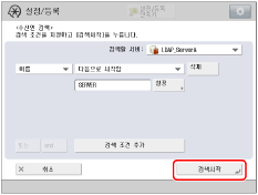 검색 기준을 지정하지 않고 [검색시작]을 누르면 LDAP 서버에 저장된 모든 주소가 표시됩니다. |
