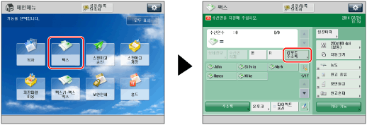 → [팩스] → [리모트 주소록]을 누릅니다.