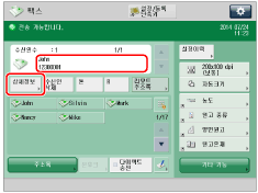 LDAP 서버를 통해 가져온 수신인과 신규 수신인을 사용하여 지정한 수신인만 변경할 수 있습니다. <ECM 송신>, <송신속도> 및 <국제송신>은 리모트 주소록에서 수신인을 지정한 경우 나타나지 않습니다. |
