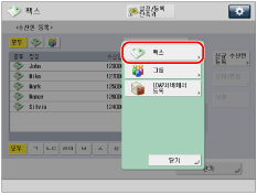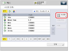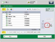 주소록 화면에서 [ㄱ], [ㄴㄷ] 및 [A ~ Z] 등과 같은 버튼을 누르면, 이름의 첫 번째 문자에 따라 수신인 리스트가 정렬됩니다. |