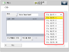 [박스에 저장]을 선택한 경우 박스를 선택하고 → [확인]을 누릅니다. 한 그룹 주소에 하나의 박스만 저장할 수 있습니다.