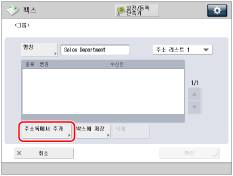 수신인을 삭제하려면 삭제할 수신인을 선택하고 → [삭제]를 누릅니다. |