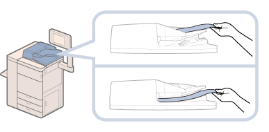 폭이 432 mm ~ 630 mm인 긴 원고를 스캔하는 경우, 스캔한 원고가 구겨지지 않도록 양면 컬러 이미지 리더-K1에서 보조 원고 배지 트레이를 잡아당기지 마십시오. 이 경우, 급지 및 출력 시 원고를 손으로 받쳐 주십시오. |