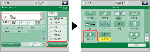 크기가 다른 원고를 피더에 세트할 경우 [원고혼재]를 설정하십시오. ("원고 혼재" 참고) 단면 원고를 양면 원고로 스캔하여 양면 문서로 저장하려면 원고를 각각 단면 원고와 양면 원고 묶음으로 분류하십시오. 예를 들어 첫 번째 묶음이 양면 원고라면 [양면원고]를 설정하십시오. 이후 스캔할 각 원고의 묶음에 대해 수동으로 [양면원고]를 설정 또는 취소해야 합니다. |
