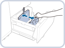 봉투를 넣을 때 봉투 넓이 보다 약간 더 넓게 크기 변경 판를 조정한 후 크기 변경 판 사이의 중간에 봉투를 넣습니다. 봉투 넓이 보다 훨씬 더 넓게 크기 변경 판을 조정하면 봉투 종류에 따라 봉투 덮개가 걸려 용지 공급에 문제가 발생할 수 있습니다. 말린 봉투는 사용하기 전에 똑바로 펴주십시오. 넣을 수 있는 최대 봉투 수량은 봉투 종류 및 사용자 운영 환경에 따라 다양할 수 있습니다. 일반적으로, 최대 수량은 약 봉투 50매입니다. |