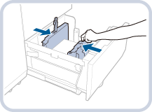 용지면의 양쪽 길이가 182 mm ~ 487.7 mm이고 폭이 139.7 mm ~ 330.2 mm인 사용자설정 크기의 용지를 적재할 수 있습니다. 용지면의 한쪽이 적재할 수 있는 용지 크기보다 작거나 큰 사용자설정 크기의 용지는 적재할 수 없습니다. 인쇄 중에 용지를 적재하라는 메시지가 나타나는 경우, 적절한 용지를 적재한 후에 잔여 인쇄가 자동으로 수행됩니다. 다른 용지 공급원을 선택한 경우, [확인]을 누른 후 나머지가 인쇄됩니다. 인쇄를 취소하려면 [취소]를 누릅니다. 용지를 보통 용지에서 코팅지로 변경하여 다중 카세트 페이퍼 데크-C1에 적재하는 경우, 용지에 따뜻한 바람을 불어넣기 위해 온도 조절이 필요하므로 이에 따른 대기 시간이 발생할 수 있습니다. |