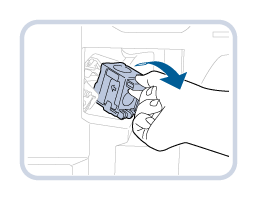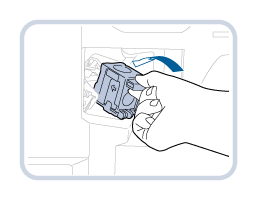 스테이플 피니셔-T1 또는 소책자 피니셔-T1의 스테이플러 유니트에 스테이플이 부족하여 스테이플러 유니트의 스테이플 카트리지를 교체해야 하는 경우 스테이플 카트리지를 교체하라는 애니메이션이 터치 패널 화면에 나타납니다.