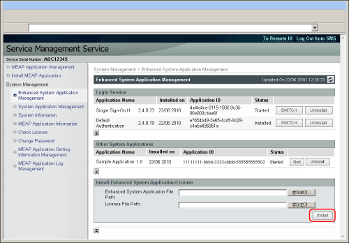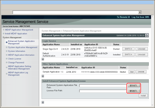 시스템 응용 프로그램을 설치하는 경우 프로그램 파일과 라이선스 파일을 지정해야 합니다. |