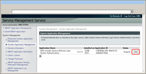 비밀번호 인증 및 리모트 로그인 서비스 인증을 둘 다 [Start] 할 수 있지만 둘 다 [Stop]할 수는 없습니다. (하나 이상의 서비스가 [Start]로 설정됩니다.) |