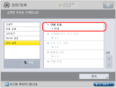 IPv6 통신을 사용하지 않으려는 경우 <IPv6 사용>에 대해 [해제]를 누릅니다.